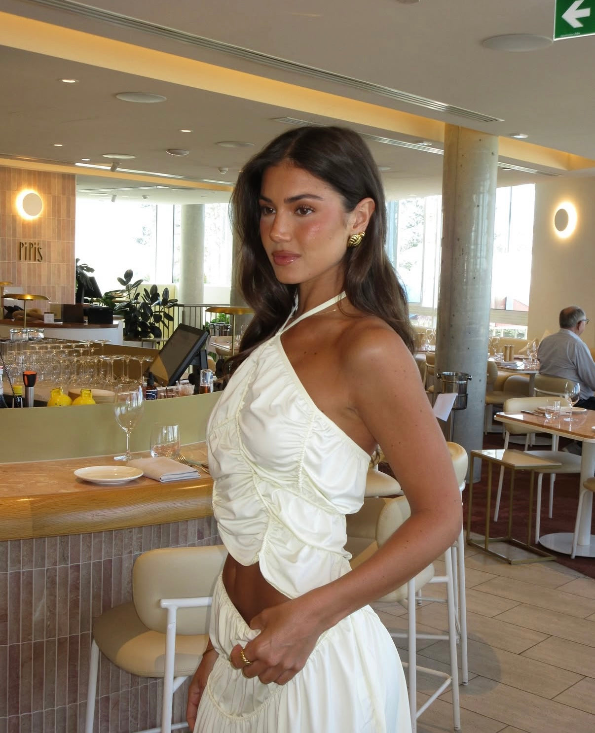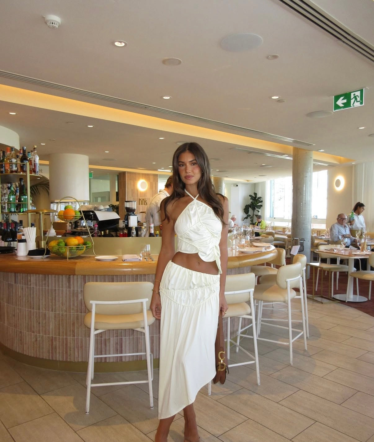 Sculpted and sensual, meet the Fleur Top and skirt by Koster Kulture designed to flatter with bold abstract hand-tacked piping details. Crafted in a soft butter yellow from a recycled poly-elastane blend, it offers a gentle stretch that flatters the body with movement. An off-centre halter neckline ties delicately at the neck with adjustable thin straps. Finished with an asymmetrical hem that blends vintage glamour into a modern twist.